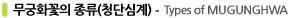 무궁화꽃의 의미 무궁화꽃의 유래 무궁화꽃의 생김새 무궁화꽃의 종류 - 배달계 - 청단심계 - 백단심계 - 아사달계 - 홍단심계 - 외국의 우수품종 무궁화 기르기 무궁화꽃의 풍속과 민속 무궁화꽃의 의학적 효능과 이용 나라꽃무궁화의 잘못된 상식 - 국화 말살 - 진딧물 꽃 - 꽃이 아름답지 않다 무궁화보급을 위해 힘쓰신 분들 - 남궁 억 선생 - 김석겸 무궁화연구원 원장