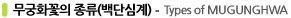 무궁화류는 세계적으로 350여종, 한국에는 100종의 고유품종을 포함해 250여종이 있다.