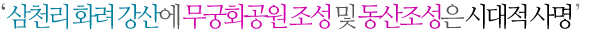 삼천리 화려강산에 무궁화 공원 조성 및 동산 조성은 시대적 사명입니다.