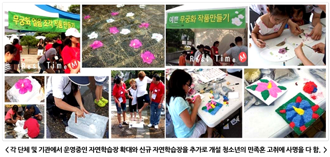 무궁화공원 및 동산 조성 특화거리 조성 무궁화 시범농장 및 학습장 무궁화 큰 잔치 및 백일장 현대미술작품 디자인